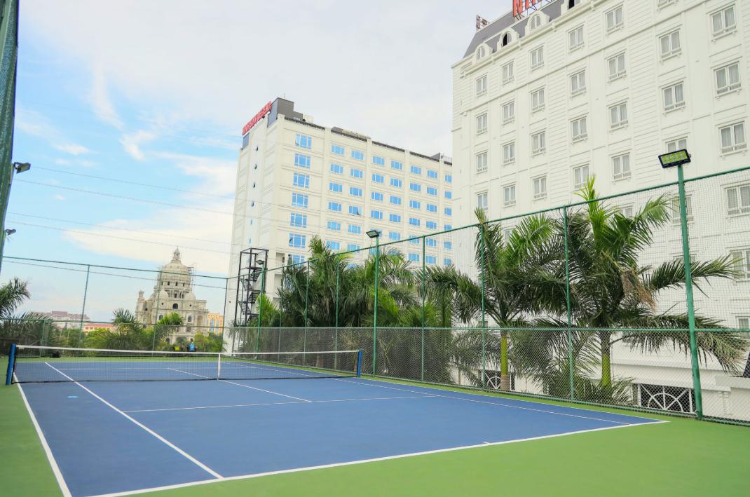 Sân tennis được bố trí rộng rãi, thoáng đãng và được thiết kế theo tiêu chuẩn quy định, mang đến cho khách hàng những trải nghiệm tuyệt vời trong việc tập luyện và giao lưu. Giờ hoạt động: 6:00 – 22:00.